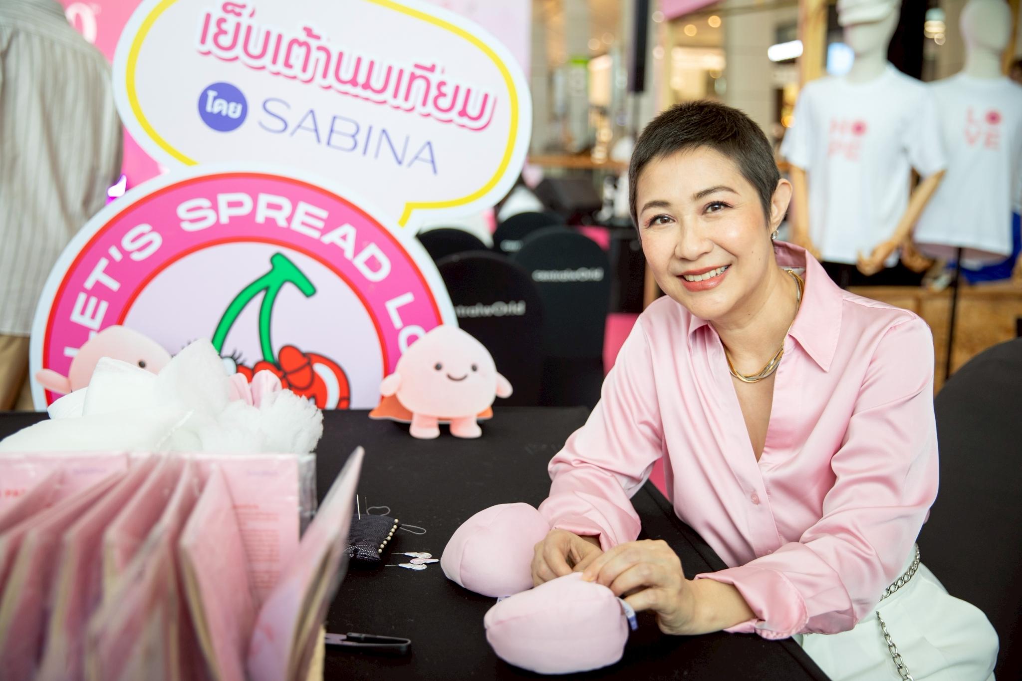 ซาบีน่า ในฐานะแบรนด์ชุดชั้นในที่ให้ความสำคัญกับผู้หญิงและสุขภาพของสตรี ได้ร่วมออกบูธกิจกรรม “Sabina Sewing Cup Sewing Heart เย็บเต้ารวมใจ สู้ภัยมะเร็งเต้านม” เชิญชวนจิตอาสาร่วมเวิร์กช็อปเย็บเต้านมเทียม เพื่อมอบกำลังใจและเติมเต็มความมั่นใจให้กับผู้ป่วยมะเร็งเต้านม เต้านมเทียมที่ผลิตจากกิจกรรมนี้จะถูกส่งต่อให้กับผู้ป่วยที่ขาดแคลนทั่วประเทศ