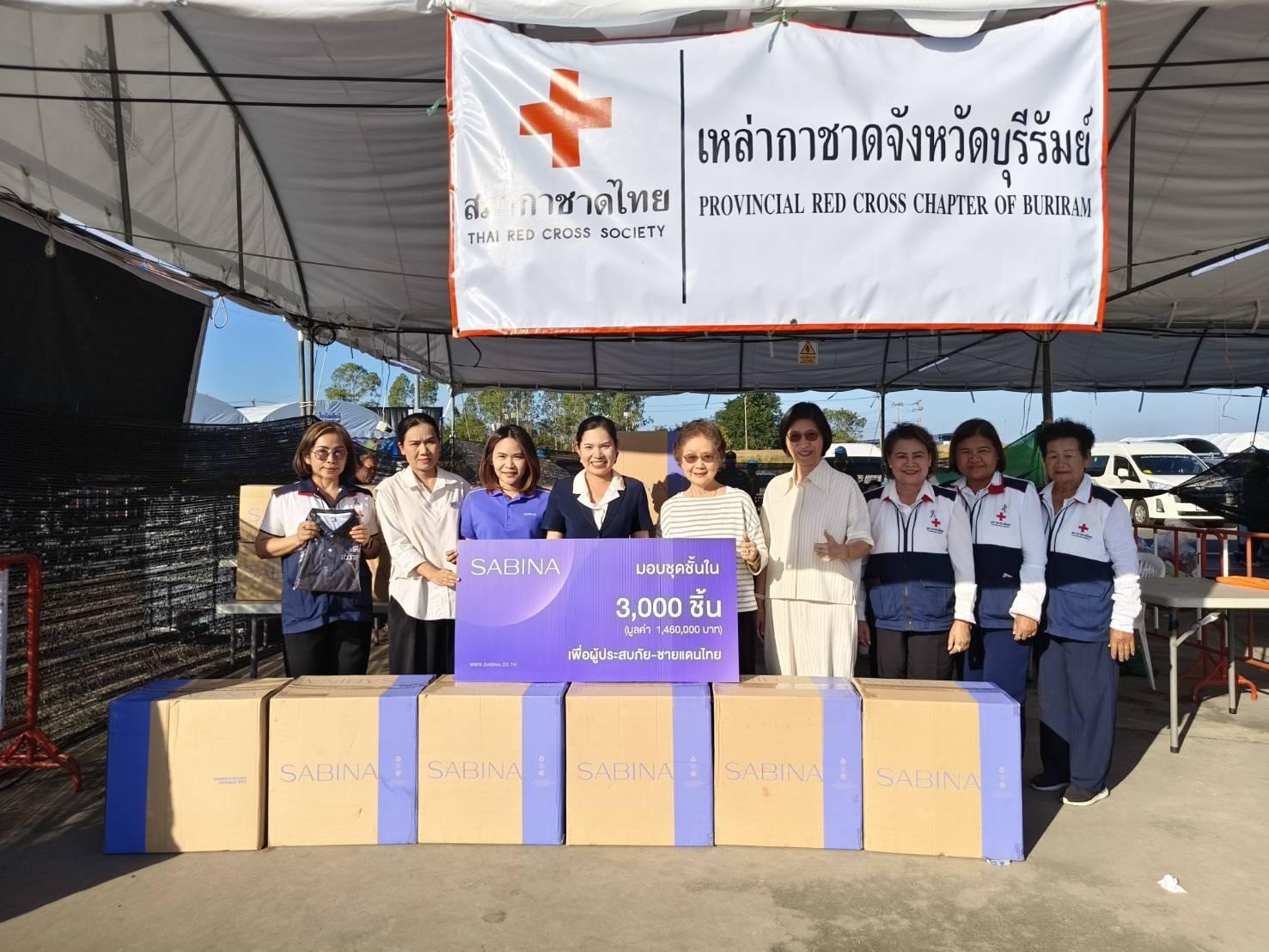 เมื่อวันเสาร์ที่ 20 ธันวาคม 2568 ณ ศูนย์พักพิงจังหวัดบุรีรัมย์ บริษัท ซาบีน่า จำกัด (มหาชน) แสดงความห่วงใยต่อผู้ประสบภัยจากเหตุการณ์สู้รบตามแนวชายแดนไทย–กัมพูชา โดยได้มอบ ชุดชั้นในจำนวน 3,000 ชิ้น ผ่าน ห้างทวีกิจบุรีรัมย์ เพื่อนำไปช่วยเหลือและบรรเทาความเดือดร้อนแก่ผู้อพยพในพื้นที่ ในการนี้ เภสัชกรหญิงณัฐรดา ปิจนำ นายกเหล่ากาชาดจังหวัดบุรีรัมย์ พร้อมด้วยคณะกรรมการและสมาชิกเหล่ากาชาดจังหวัดบุรีรัมย์ ได้ร่วมเป็นสื่อกลางในการรับมอบและส่งต่อสิ่งของบริจาคดังกล่าว เพื่อกระจายความช่วยเหลือให้ถึงมือผู้ประสบภัยอย่างทั่วถึงและเหมาะสม