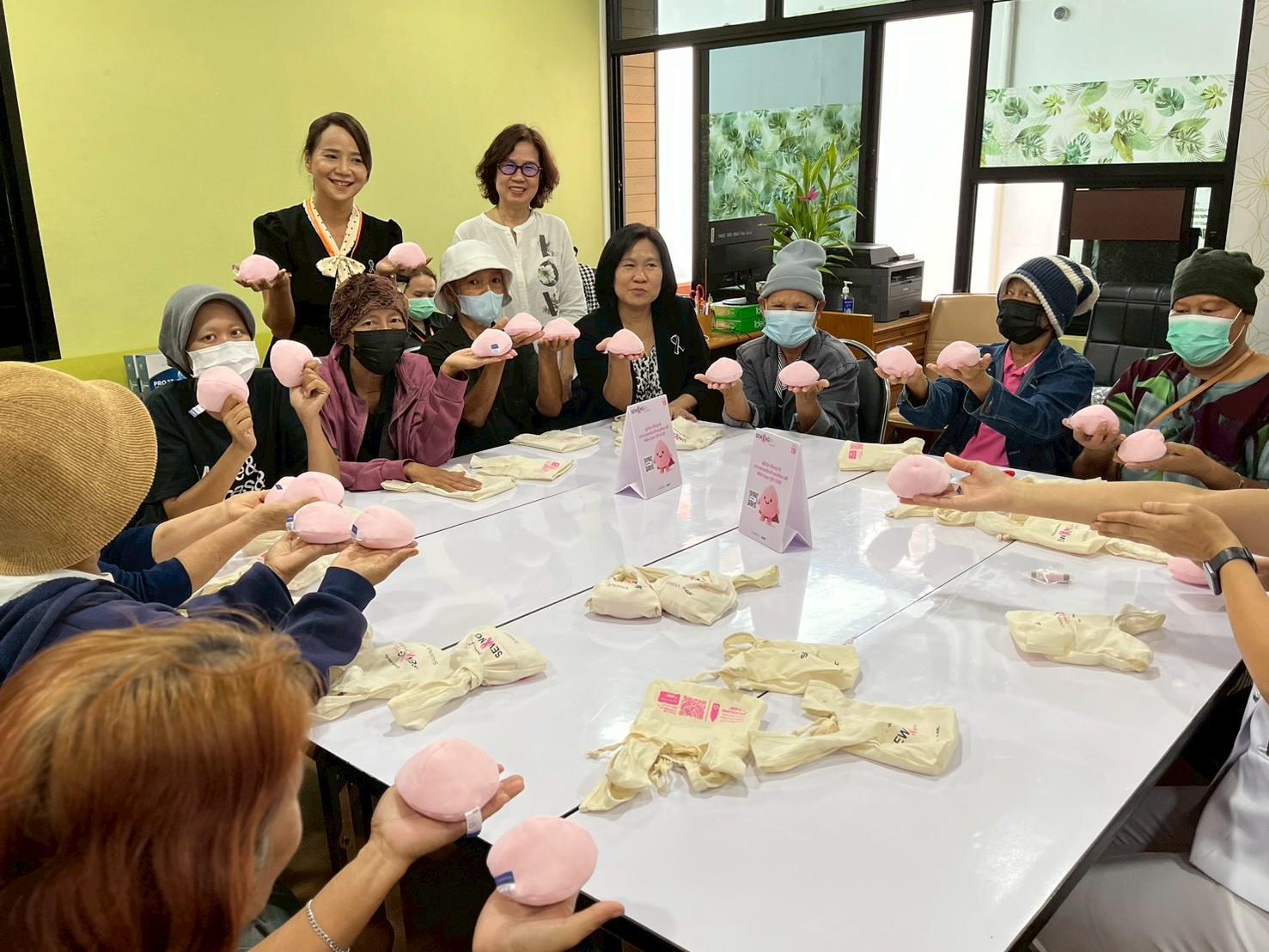 นอกจากนี้ จิตอาสาทุกท่านยังได้รับ แผ่นฟองน้ำจำลองการตรวจเต้านมด้วยตนเอง (Breast Cancer Simulator Pad) เพื่อใช้เรียนรู้และสร้างความตระหนักเกี่ยวกับโรคมะเร็งเต้านม ซึ่งเป็นโรคที่พบได้บ่อยในสตรีไทย โดยมีเป้าหมายให้ประชาชนเห็นความสำคัญของการตรวจคัดกรอง หากตรวจพบในระยะเริ่มต้น โอกาสในการรักษาหายมีสูงกว่ามาก