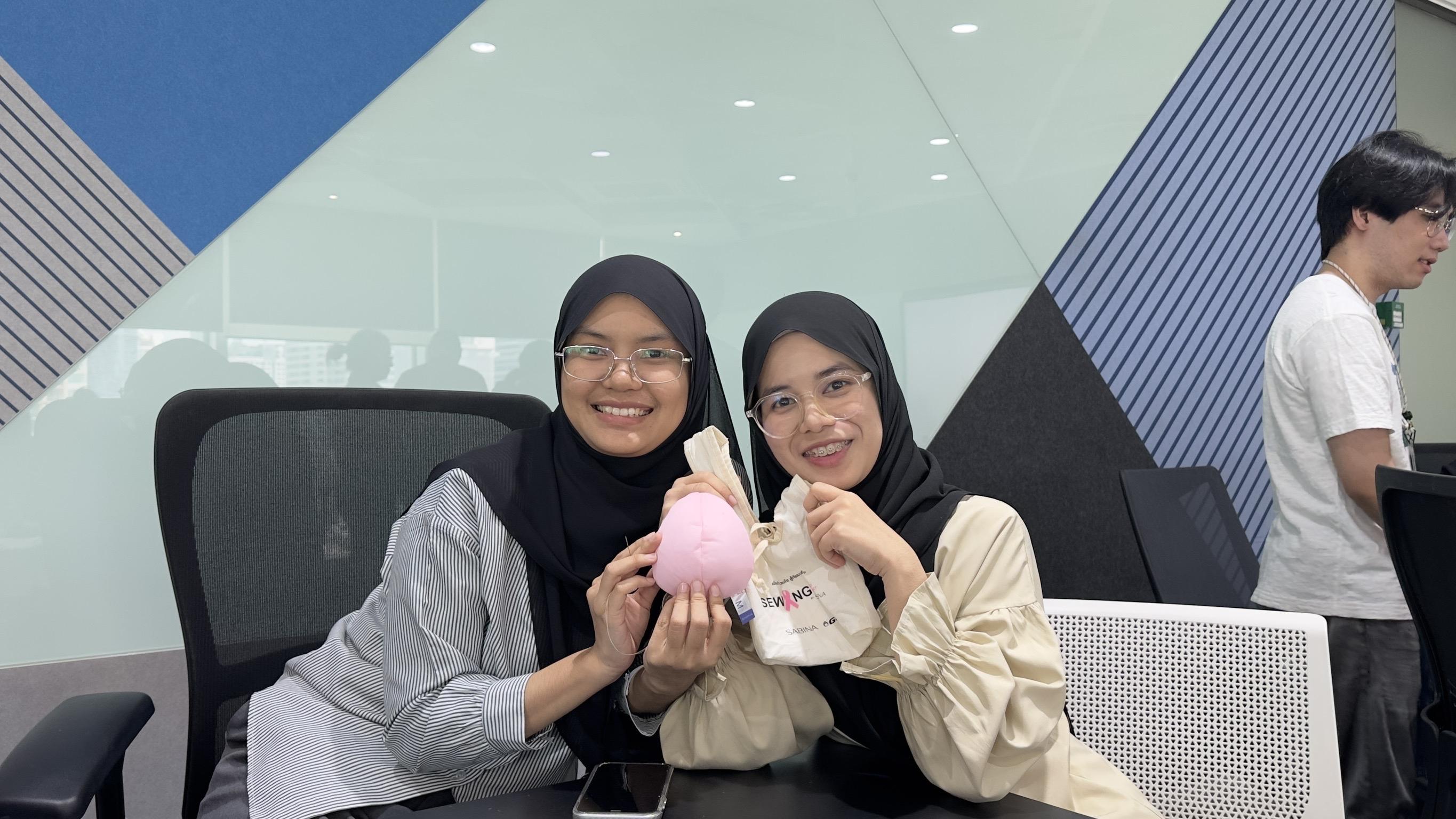 ในโอกาสนี้ บริษัท ซาบีน่า จำกัด (มหาชน) ได้ร่วมสนับสนุนอุปกรณ์สำหรับการเย็บเต้านมเทียม ภายใต้โครงการ “Sabina Sewing Cup Sewing Heart” เย็บเต้ารวมใจ สู้ภัยมะเร็งเต้านม ซึ่งเป็นโครงการที่มุ่งช่วยเหลือและฟื้นฟูคุณภาพชีวิตของผู้ป่วยมะเร็งเต้านม นอกจากนี้ ซาบีน่ายังได้มอบแผ่นฟองน้ำสำหรับฝึกการตรวจเต้านมด้วยตนเอง (Breast Cancer Simulator Pad) ให้แก่ผู้เข้าร่วมกิจกรรม เพื่อส่งเสริมความรู้และสร้างความตระหนักในการตรวจคัดกรองมะเร็งเต้านมอย่างถูกวิธี