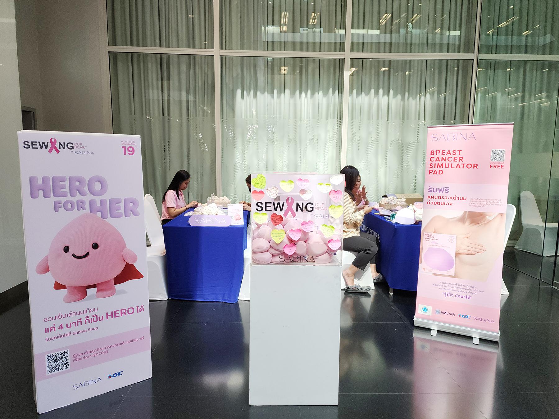 ในโอกาสนี้ ซาบีน่า เข้าร่วมกิจกรรมโดยนำ 2 โครงการหลัก Sabina Sewing Cup Sewing Heart "เย็บเต้ารวมใจ สู้ภัยมะเร็งเต้านม" ที่ดำเนินกิจกรรมมากว่า 19 ปี เปิดพื้นที่ให้ผู้ร่วมงานและจิตอาสาได้ร่วมส่งต่อกำลังใจ ผ่านกิจกรรมเย็บเต้านมเทียมเพื่อส่งต่อความรู้และกำลังใจให้ผู้ป่วยมะเร็งเต้านม พร้อมมอบแผ่นฟองน้ำจำลองสำหรับเรียนรู้การตรวจเต้านมด้วยตนเองในโครงการ Breast Cancer Simulator Pad ให้แก่ผู้ที่มาร่วมกิจกรรมที่บูธ นอกจานี้ยังมีบูธจำหน่ายสินค้าราคาพิเศษ รายได้ 10% มอบให้มูลนิธิถันยรักษ์ฯ
